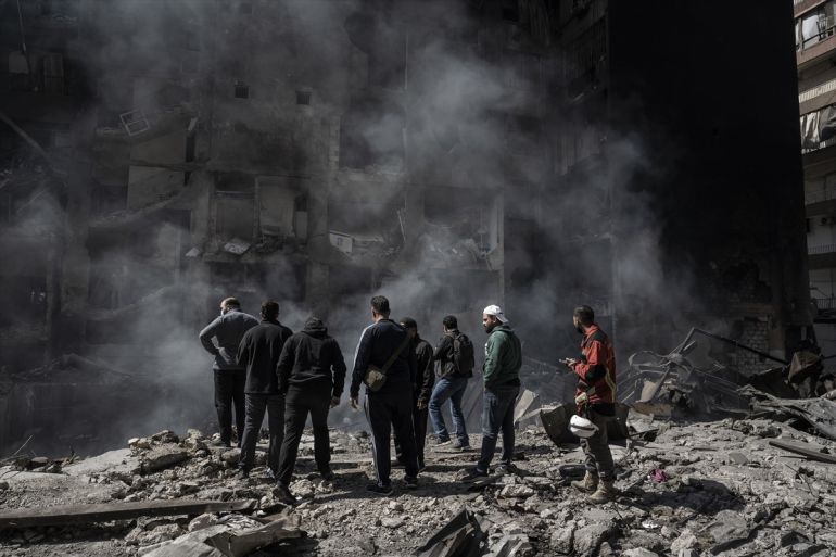 Civilians inspect a residential building after an Israeli strike hit the Corniche El-Mazraa district in Beirut, Lebanon, on April 9, 2026. The Israeli army carried out 100 simultaneous attacks across Lebanon, including on the capital [Murat Şengül/Anadolu]